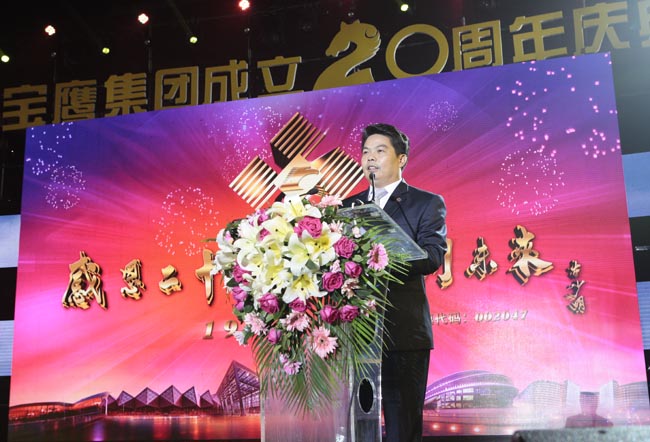 2014年4月3日,以“感恩二十载,携手创未来”为主题的宝鹰集团20周年庆典在深圳市会展中心五号馆隆重举行,来自社会各界的、一直支持关心宝鹰发展的领导嘉宾和朋友们1000余人欢聚一堂,共同见证宝鹰集团20周岁生日。