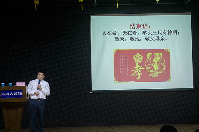 为满足我市装饰行业专业技术人员参加继续教育培训的需求,2014年7月24日、25日,由深圳市装饰行业协会主办的“2014年度职称继续教育培训”在深圳市海大装饰有限公司举行。宝鹰建设集团副总裁古朴受邀参加活动并作了一场题为《天人合一》的精彩讲座。