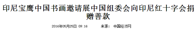 5月24日上午,在雅加达印尼红十字会总部,宝鹰股份董事长古少波代表印尼宝鹰中国书画邀请展中国组委会向印尼红十字会捐赠了20亿印尼盾善款。印尼副总统、印尼红十字会总主席卡拉见证捐赠并发表致辞。