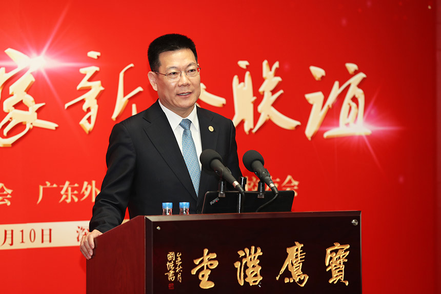2月10日,广东外语外贸大学企业家新春联谊会在宝鹰讲堂举行。 广东外语外贸大学党委副书记、校长仲伟合,广东外语外贸大学副校长何传添出席联谊会。
